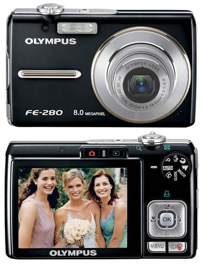 The FE-280 is part of Olympus' Summer 2007 introduction of no fewer than nine consumer cameras. It is a super-slim design that offers a bit of everything to appeal to a wide variety of consumers. And an attractive 8-megapixel camera with a list price of US$199.99 is certainly welcome.