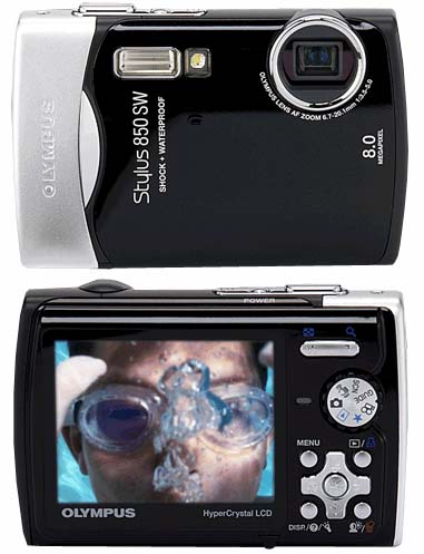 The attractive ultra-compact water, shock and shockproof 8-megapixel Stylus 850 SW is perfect for those who love to take their camera outdoors without having to baby it. The camera can take a beating and you can even use it underwater, down to a depth of ten feet. It has the same features as standard consumer models, which means it is useful anywhere and not just as a sports camera. We like the internal zoom, the excellent 2.5-inch LCD with its very wide viewing angle. Keep in mind that if you want a camera you can take diving without a housing or one that is crush-proof as well, you need the older Stylus 770 or the new Stylus 1030. But if you just want something waterproof, the less expensive 850 SW is just right.